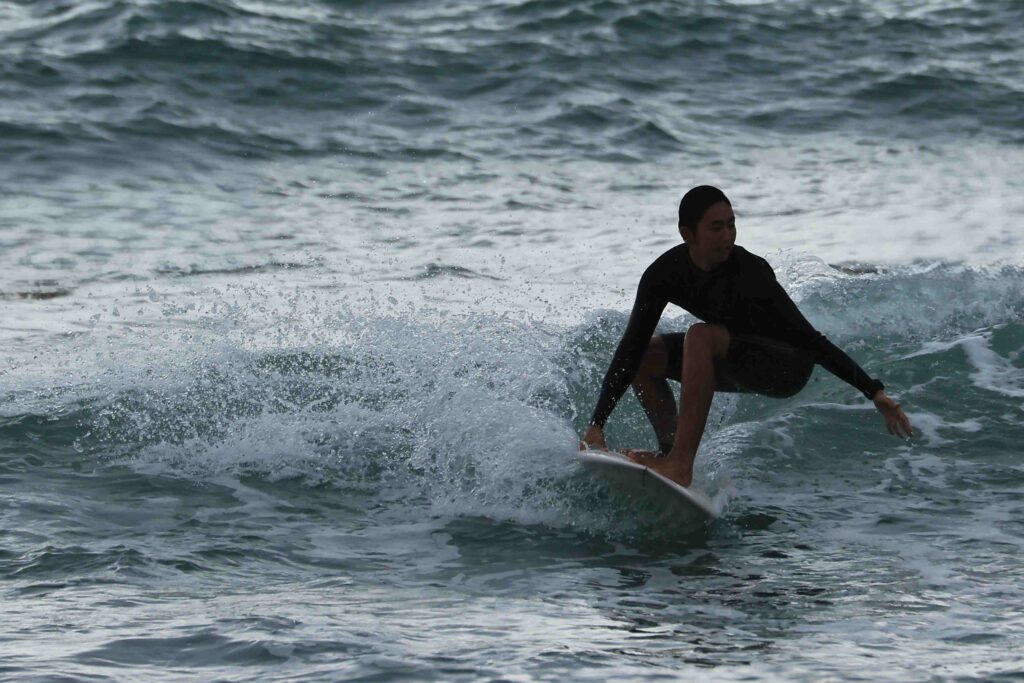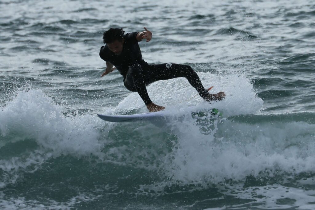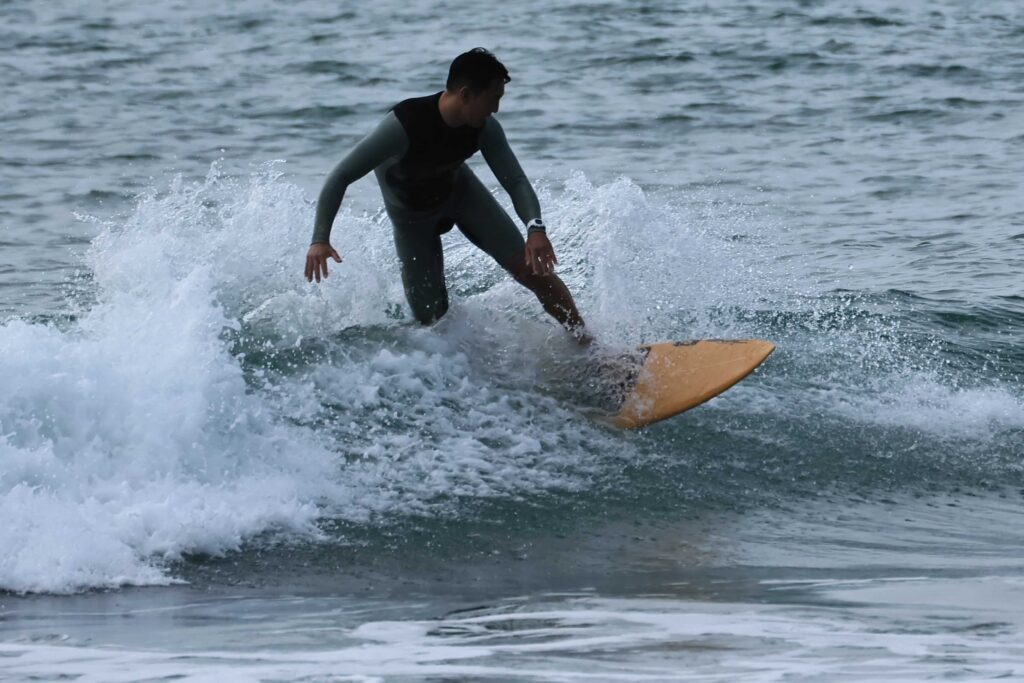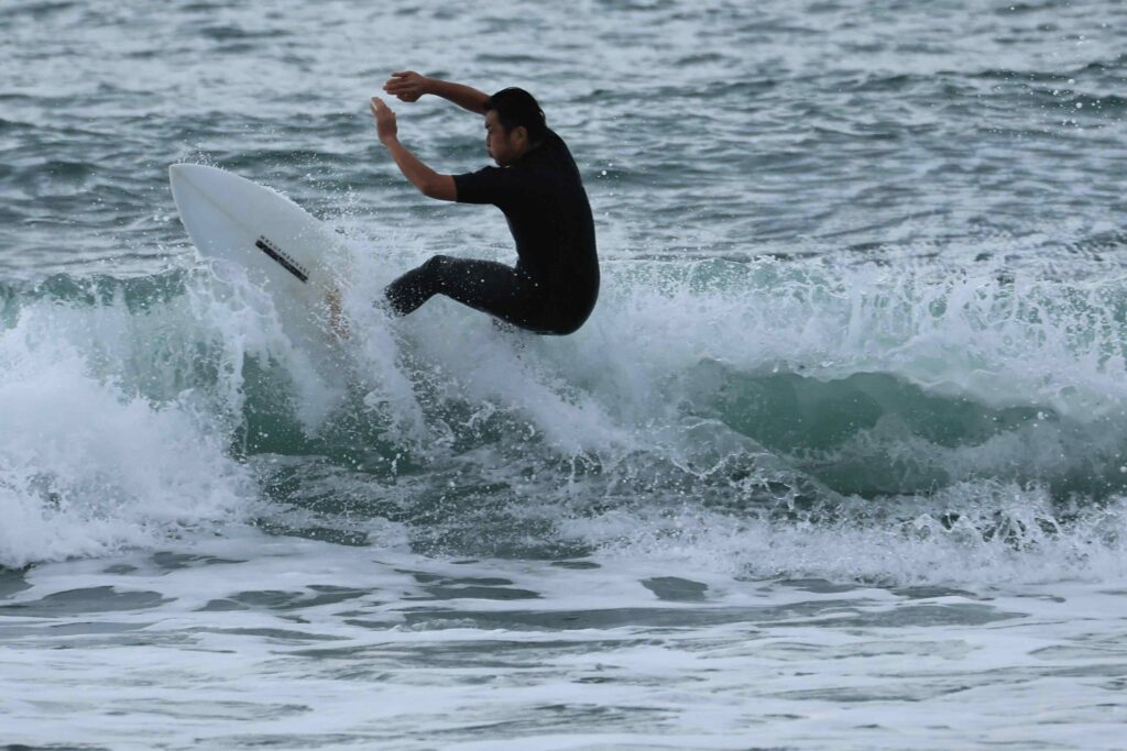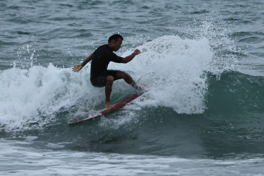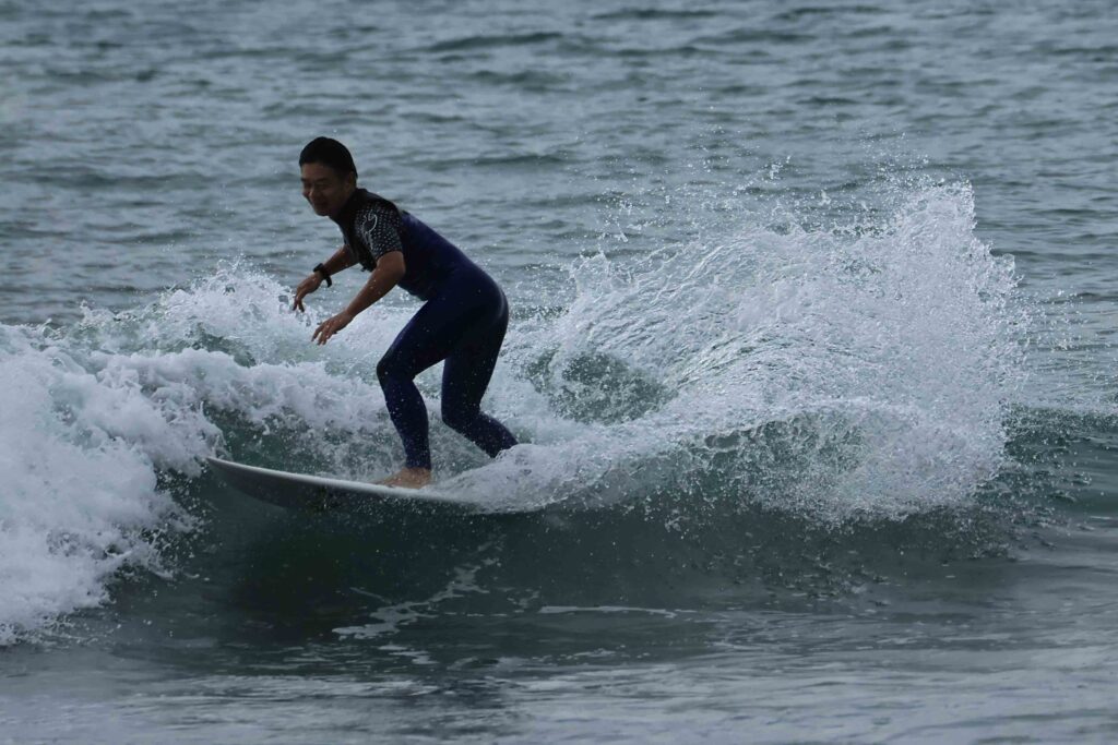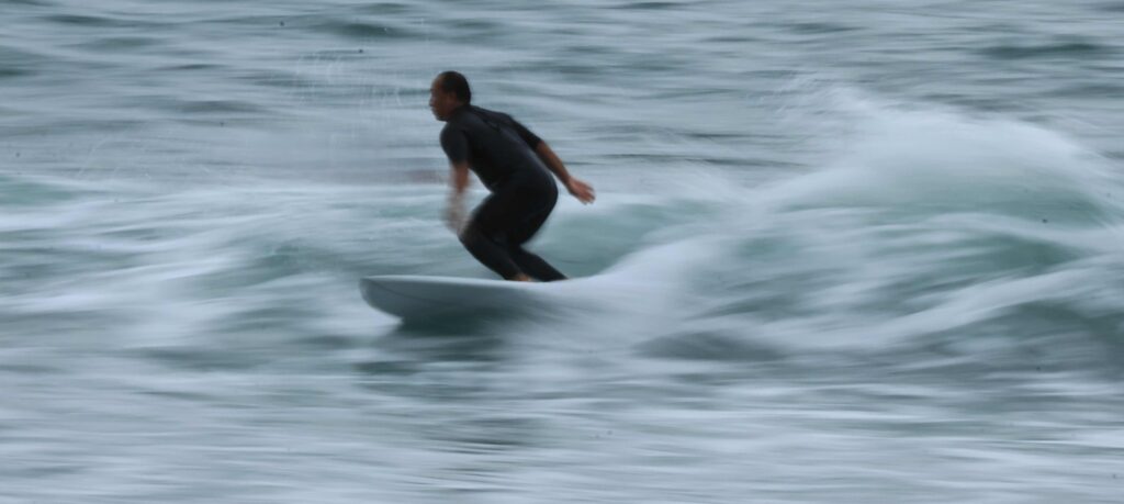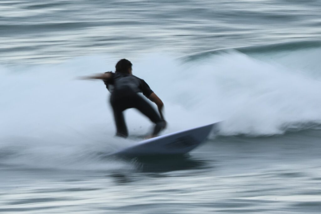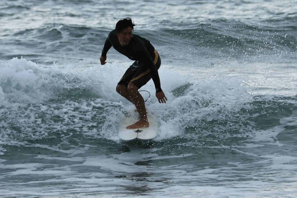 昨日は用事があったので来ないので波の様子が分からないが、今日もあいにくの小波だ。たまに来る良い波に乗れるのも波を見る目力と運だ。今日は久しぶりに流し撮りをして見たが、やはりサーフィンのスピードは遅い。それでもスピード感は出ましたね。今度ターボエンジン付けてみて下さい、自動車みたいに平らな舗装道路を走っているんじゃ無いからね、サーフィンが一番難しい、たまに撮るからよけいね………!