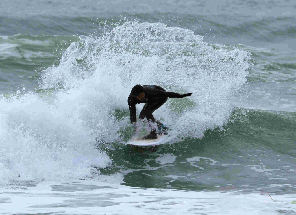 昨日は荒れた大波だったが、今日は静かな綺麗な波になったけど、チョッとなるい波の様で波が逃げてしまう、中々乗れない波が多かったか。曇り日なので海のバックが白くてスプレーが目立たない。次を期待して………! 追記、昨日はミサゴというタカが魚を2匹左足でつかんでいた、今日はカモメが魚を……!